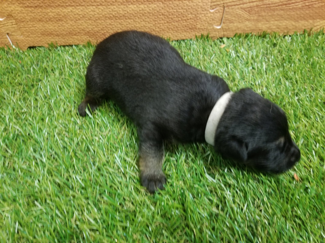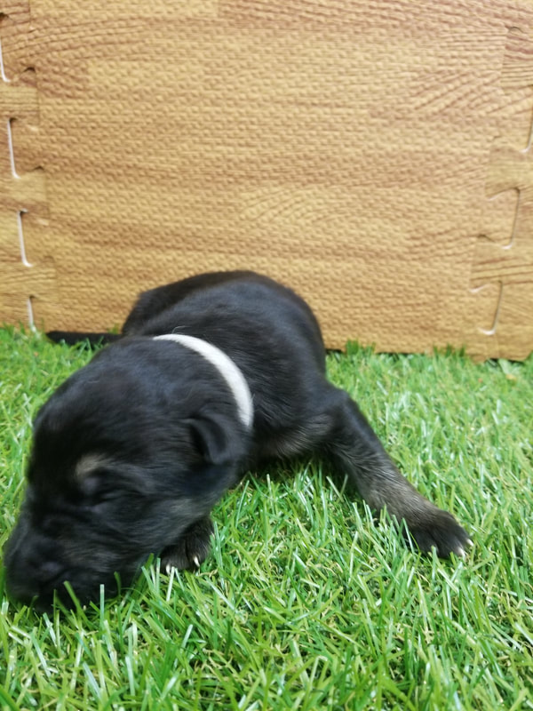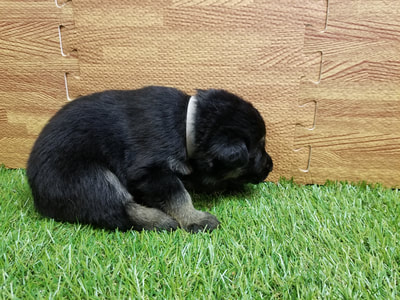 Coat Color: Black & Tan Time of birth: 6:47am Birth Weight: 0.42 kg. 427 g. |